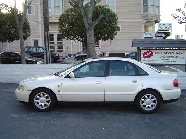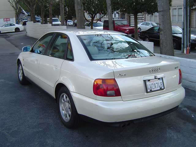 1997 Audi A4 1.8T1997 Audi A4 1.8T Drive: Front Wheel Drive Color: Pearl White Transmission: 5-speed automatic w/OD Engine: 150-hp, 1.8-liter I-4 Miles Driven: 102,000 Miles Packages: Multi Compact Disc (Alpine 5 Disc XM Radio MP3 CD Changer /w Remote) Leather Seats ABS Four Wheel Air Conditioning Alloy Wheels Cruise Control Dual Front Airbags Power Door Locks Power Steering Power Windows Am/FM Stereo Cassette Sliding Sunroof Glass Moonroof Tilt Wheel This car was regularily maintained @ the Audi Dealership in San Francisco ![]()